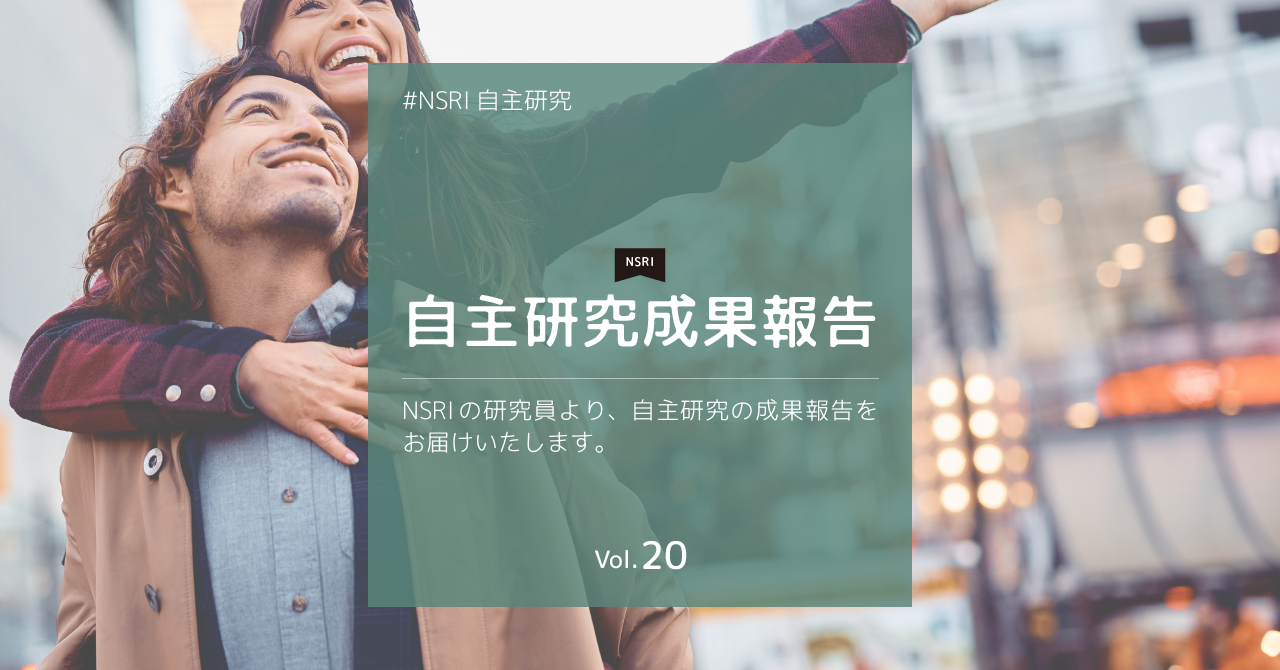 日建設計総合研究所(NSRI)では、社会課題解決のために自主的・戦略的に研究を行うことが出来る仕組み『自主研究』に取り組んでいます。その自主研究の中からピックアップしてご紹介する第20弾です。興味がある、協働したい、という方からのご連絡をお待ちしております。