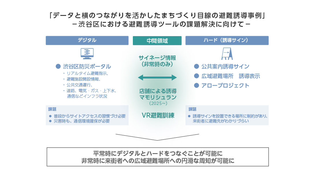 岡: 実際の避難誘導を考えると、渋谷にあるオフィス・商業ビルなどの大規模事業者は、まず帰宅困難者の受け入れをしっかり考えています。一方で、警察や行政が建物の外、街中での避難誘導すべてに対応するのは現実的に困難です。そのため、発災時に路上の避難者が取り残されることのないよう、連携パートナーと協力しながら、渋谷区の安全性向上に貢献していきたいと思っています。