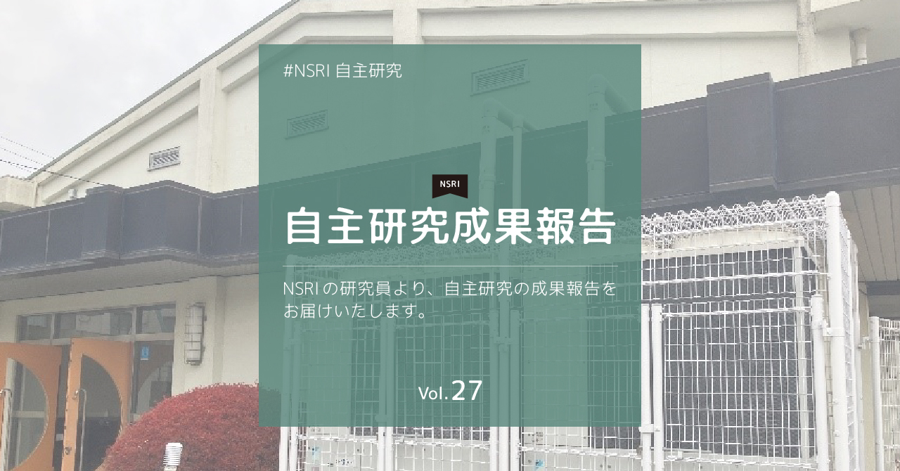 日建設計総合研究所(NSRI)では、社会課題解決のために自主的・戦略的に研究を行うことが出来る仕組み『自主研究』に取り組んでいます。その自主研究の中からピックアップしてご紹介する第27弾です。興味がある、協働したい、という方からのご連絡をお待ちしております。