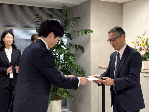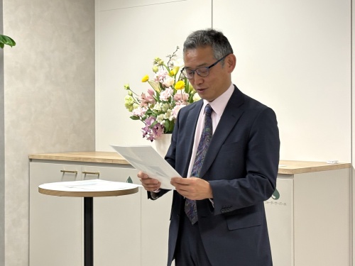 取締役 所長の石川 貴之より入社を歓迎するメッセージを伝えました。