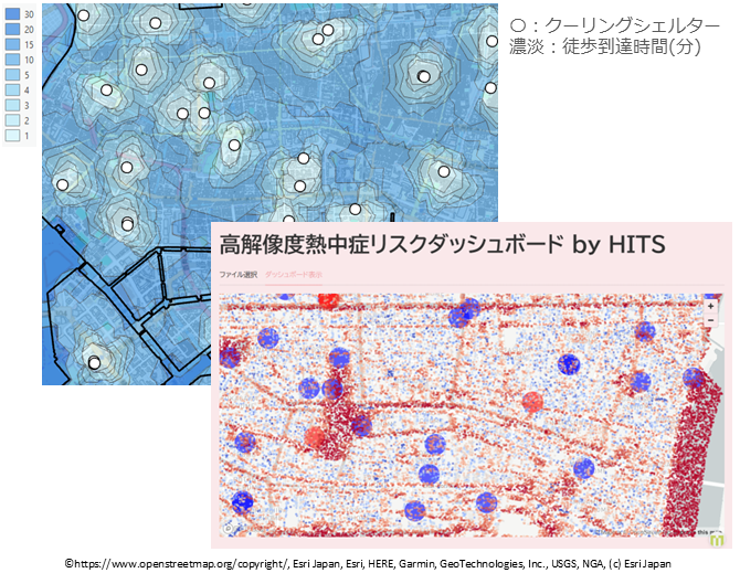 屋外歩行者の熱中症のリスクをデータと指数でわかり易く把握することが可能な、高解像度熱中症リスク評価マップです。