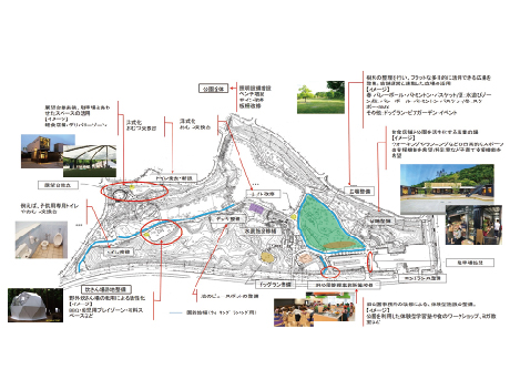 本業務は、開設から約50年が経過した千里中央公園を、官民連携手法の活用により、現代的でより魅力的な公園として再生するための計画策定を実施しました。現地調査による公園のポテンシャルの把握、利用者アンケート、民間事業者へのヒアリング等から総合的に検討した結果、「公園×元気~アクティブに楽しむ」を再生コンセプトに設定し、多世代交流や健康増進等に資する新機能の導入や事業手法の整理を実施しました。